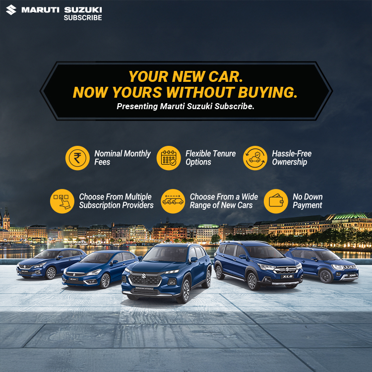 Located in Dharwad, RNS Motors offers a plethora of options of Nexa cars for Maruti Suzuki Subscribe. You can choose your desired Maruti Suzuki car and drive it home at nominal monthly fees for a variety of flexible tenure periods. Whether you prefer Hatchback, Sedan, SUV or even MUV you are sure to find it at RNS Motors, Unkal with an easy Maruti Suzuki Subscribe plan.
