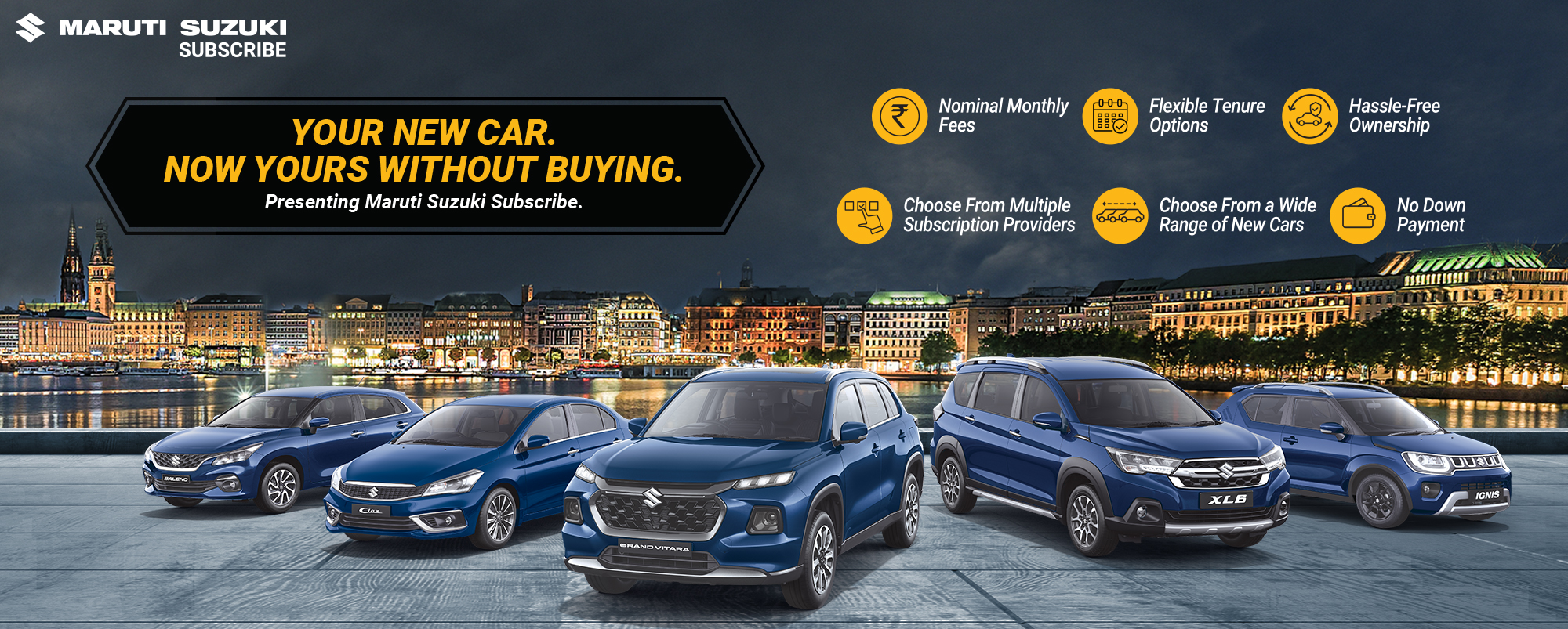 Maruti Suzuki Subscribe enables all customers to enjoy driving their preferred Maruti Suzuki cars without having to deal with all the financial responsibilities that come with owning a car.All you need to do is opt for a monthly subscription plan at a fixed monthly fee, which includes the routine maintenance and insurance costs, and choose a flexible tenure. At RNS Motors in, Unkal, Dharwad, all Hatchback, Sedan, SUV, the MUV models line-up includes Baleno, Invicto, EVitara, Jimny, Ciaz, Ignis, Fronx, Grand Vitara, XL6. Here, you will enjoy Maruti Suzuki Subscribe benefits such as: